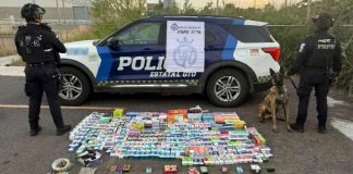 El pasado 25 de septiembre en una intervención operativa de la PESP y la Sedena, aseguraron 200 envoltorios de sustancia granulada y con hierba verde al patrullar por la colonia Luis Donaldo Colosio del poblado Miguel Alemán.