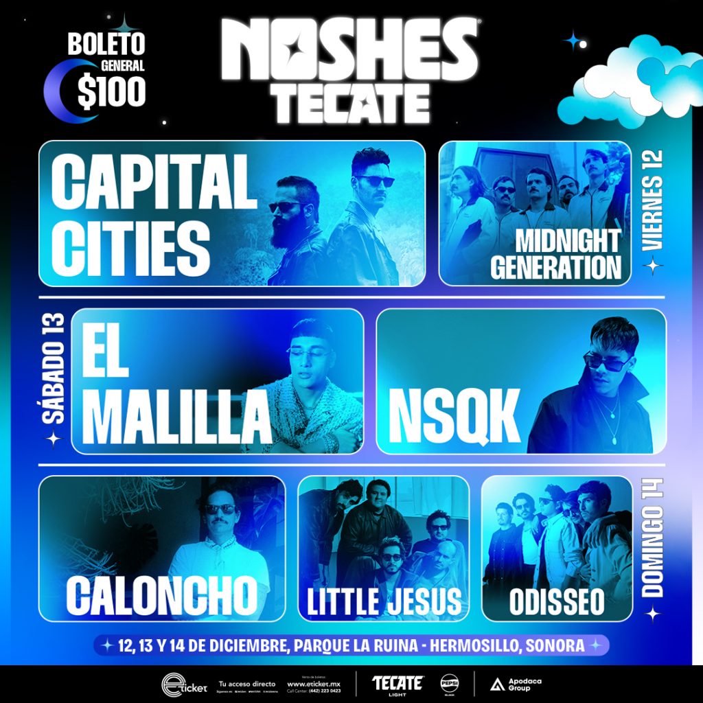 Hermosillo, Sonora.- Con la nueva propuesta de ‘Noshes Tecate’, tendrá 3 fechas llenas de ritmo con fusiones musicales únicas, con grupos como Capital Cities, Midnight Generation, Little Jesus, entre otros.