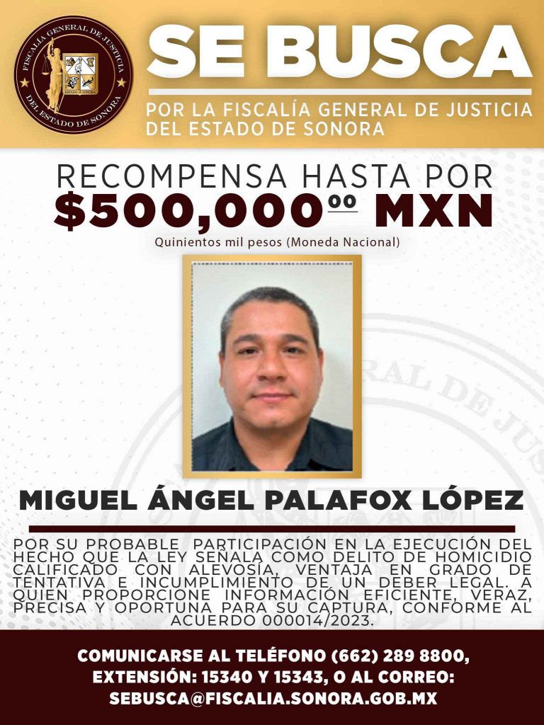 Hermosillo, Sonora.- Una recompensa de hasta un millón de pesos en total ofrece la Fiscalía General de Justicia del Estado para quien otorgue información sobre el paradero de los presuntos responsables de agredir al abogado Carlos Bustamante, el pasado mes de mayo.