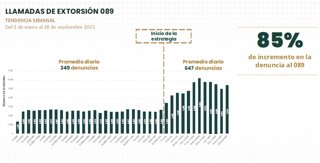 Desde julio pasado, el Gobierno federal implementó una estrategia nacional contra la extorsión, con la cual se han atendido 59 mil 283 llamadas.