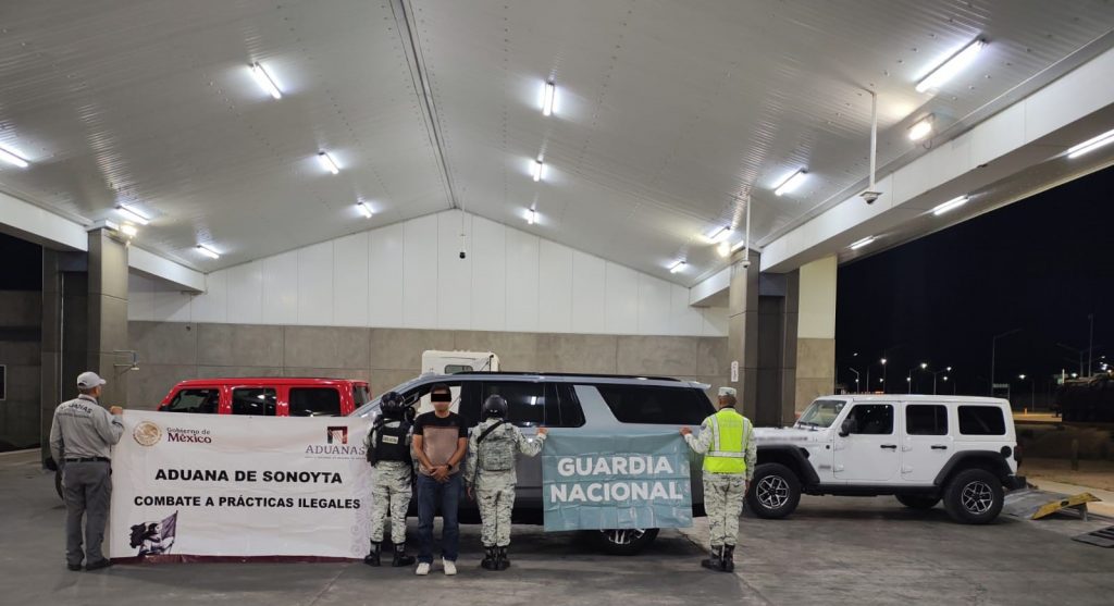En otro punto de la frontera, ubicado en la sección aduanera ‘San Emeterio’, en el municipio de General Plutarco Elías Calles (Sonoyta), fueron localizados al menos tres vehículos de gamma alta.