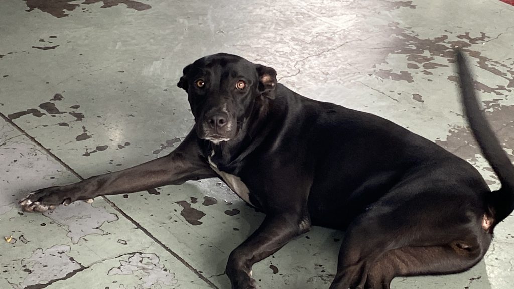 Con vehículos transitando constantemente por el área y una rutina ajetreada, los bomberos reconocen que Negrita estaría mucho mejor en un hogar donde pueda recibir la atención que merece.
