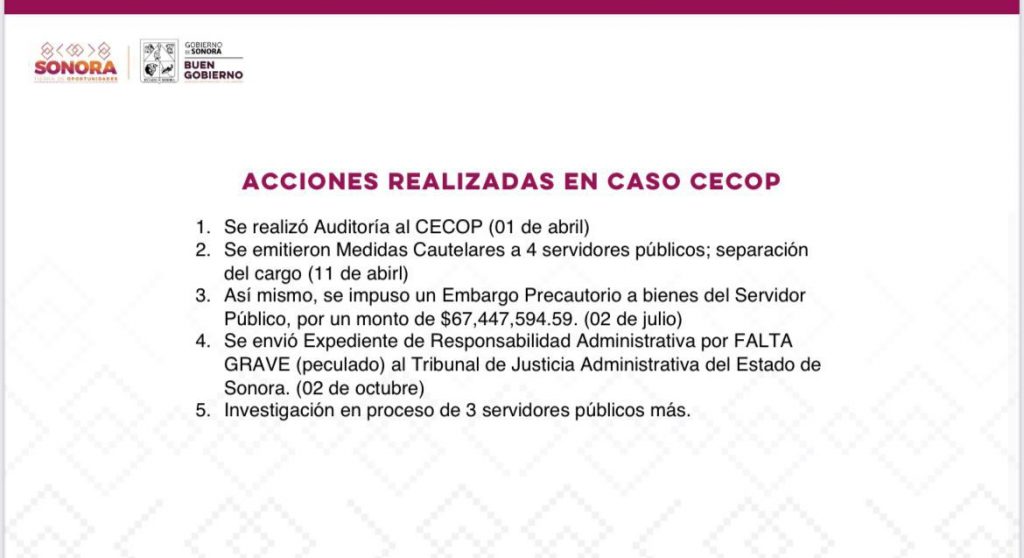 “Afortunadamente para el estado y para los sonorenses, el recurso fue recuperado”, afirmó.