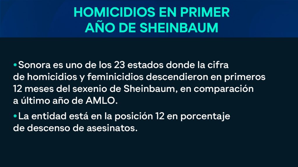 A nivel nacional, la cifra de personas asesinadas en el primer año de Sheinbaum fue de 26 mil 427, que es un 13.9 por ciento inferior a la del último año del presidente López Obrador. Eso significa que, en términos porcentuales, el descenso de las víctimas en Sonora es aún mayor que el del descenso promedio nacional.