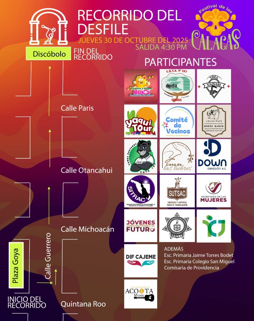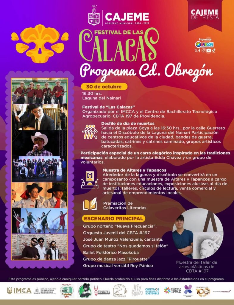 Cajeme, Sonora.- Con motivo del Día de Muertos, el municipio de Cajeme se prepara para celebrar el Festival de las Calacas 2025, una jornada dedicada al arte, la memoria y las tradiciones mexicanas.