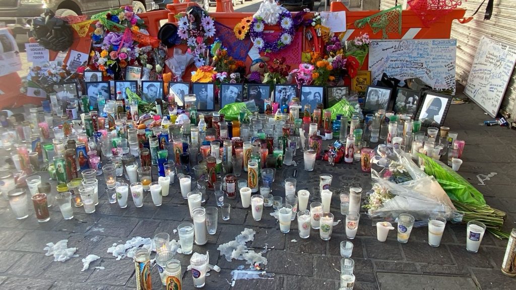 El sitio, que permaneció acordonado bajo resguardo de la Fiscalía General de Justicia del Estado, volvió a abrirse parcialmente al tránsito vehicular y peatonal, mientras continuaban las muestras de dolor y los altares improvisados en memoria de las víctimas frente a lo que fue la tienda Waldo’s.