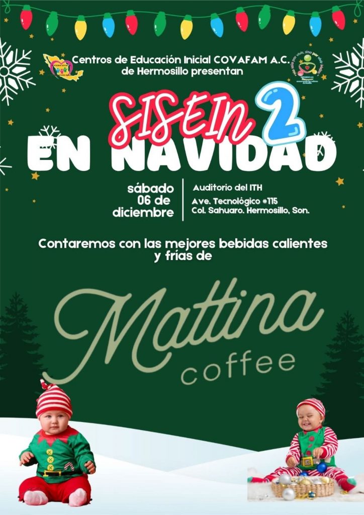 Hermosillo, Sonora.- Todo se encuentra listo para la segunda edicion del festival navideño “SISEIN en Navidad 2”, en beneficio para los centros de educación inicial de COVAFAM, el próximo 06 de diciembre.