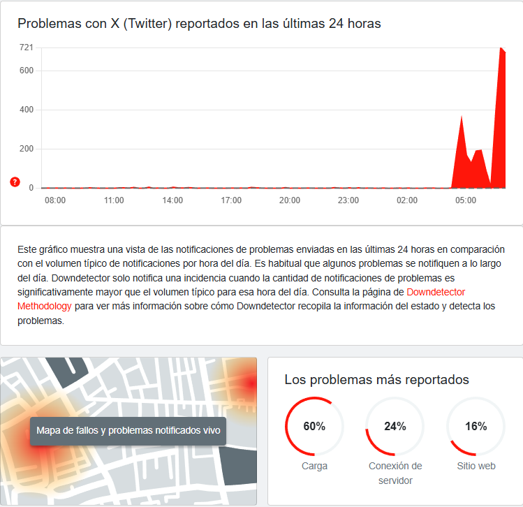 En X, se han reportado problemas para ingresar a la plataforma, realizar publicaciones, cargar contenido o llevar a cabo transmisiones en vivo, de acuerdo con Downdetector.mx.