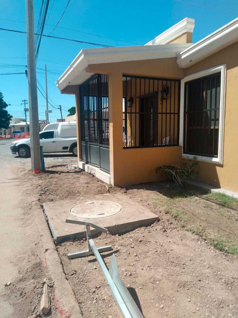 Vecino denuncia obra impuesta por Ayuntamiento y CFE en Hermosillo frente a su casa: le colocaron un poste y una red eléctrica subterránea sin su permiso