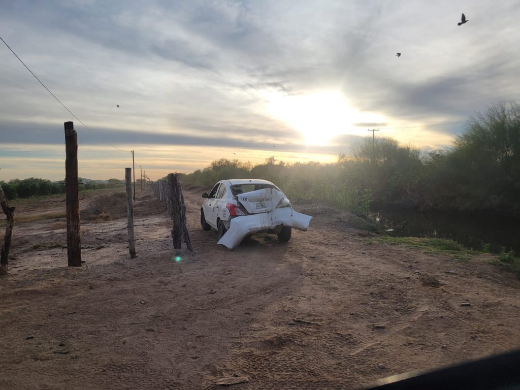 Hermosillo, Sonora.- Una persecución que comenzó al sur de la ciudad y terminó en la zona poniente dejó como resultado a un hombre detenido y un vehículo con rótulos de taxi asegurado y visiblemente dañado.