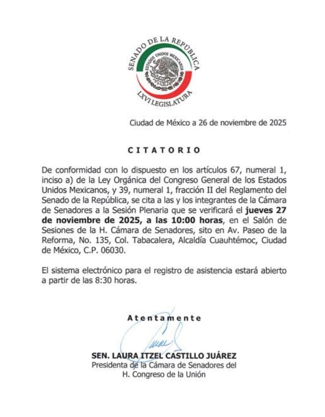 La incertidumbre creció luego de que el Senado de la República convocara a una sesión plenaria este jueves a las 10:00 horas, sin informar oficialmente el motivo del llamado.