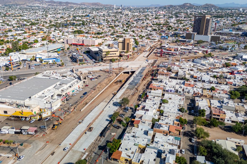 Hermosillo, Sonora.- El paso a desnivel que se construye en el cruce de los bulevares Colosio y Solidaridad registra un avance del 80%, informó este sábado el Gobierno Municipal de Hermosillo.