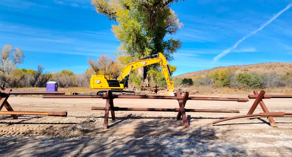 Al llegar a la zona de construcción se observó una máquina retroexcavadora, rastros de movimientos de tierra y parte del antiguo cerco internacional, hecho a base de rieles de tren soldados y entrelazados como trampas antiblindados.