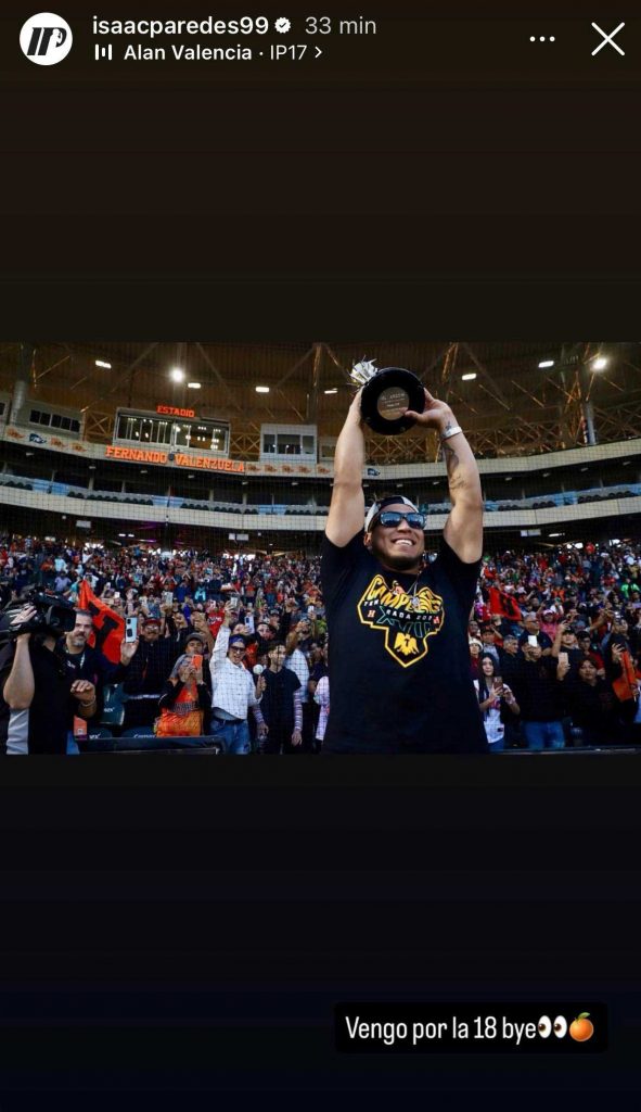 Hermosillo, Sonora.- “Vengo por la 18, bye”, fue el mensaje que Isaac Paredes dejó en sus historias de Instagram, en relación a su regreso para esta temporada con Naranjeros de Hermosillo.