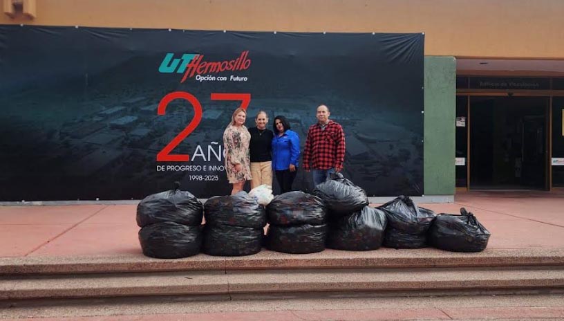 Hermosillo, Sonora.- Estudiantes, docentes y personal administrativo de la Universidad Tecnológica de Hermosillo (UTH) lograron reunir alrededor de 62 mil tapitas durante una campaña solidaria destinada a apoyar a mujeres que enfrentan cáncer, lupus o alguna discapacidad, a través de la organización Reciclando por Sonrisas “Ave Badu”.