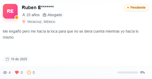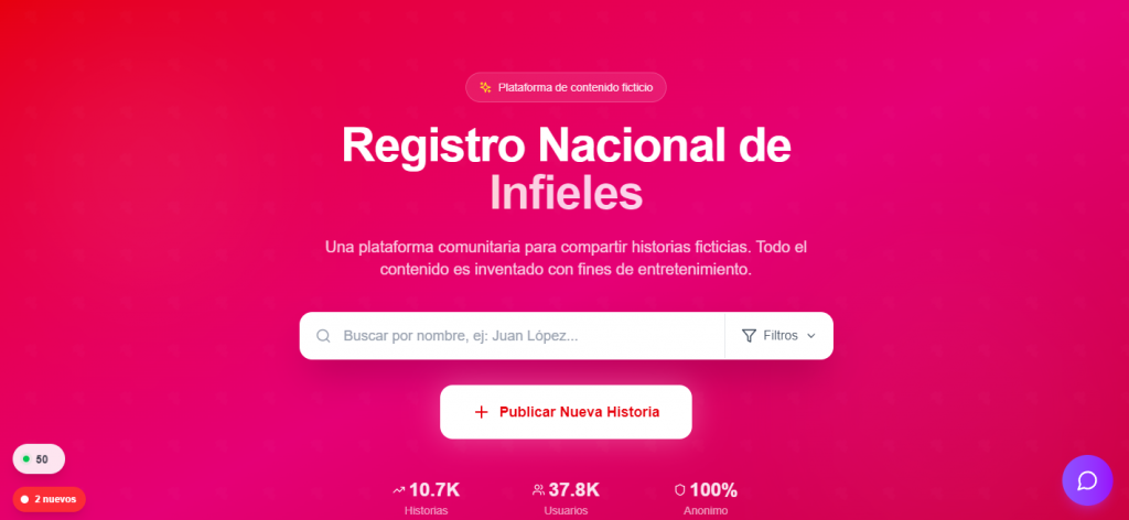 El Registro Nacional de Infieles permite a los usuarios consultar o publicar historias de manera anónima.