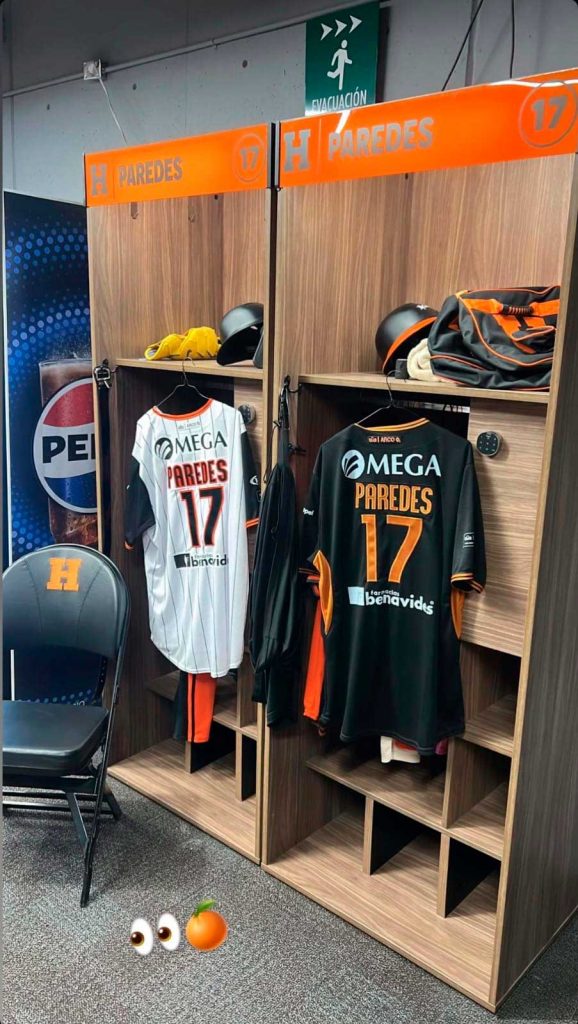 En sus historias de Instagram, el ligamayorista publicó una fotografía de su espacio en el vestidor de la Escuadra Naranja, en el que se ven sus jerseys y otros artículos de béisbol, además de que colocó dos emojis: unos ojitos y una naranja, dejando entrever su retorno a la actividad en la liga invernal.