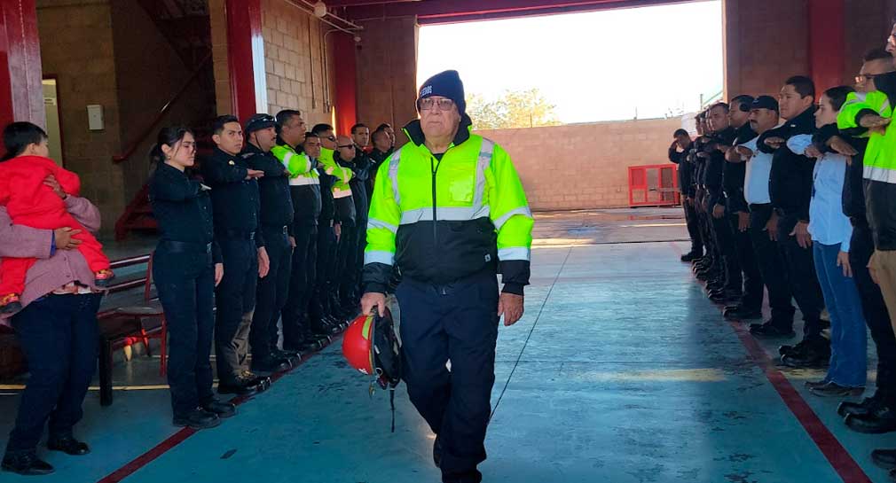 Hermosillo, Sonora.– “Una vez bombero, siempre bombero”: Entre aplausos, silencios cargados de emoción y el sonido inconfundible de las sirenas, el oficial Jesús Galaz se despidió del servicio activo tras 37 años dedicados por completo al Departamento de Bomberos de Hermosillo.