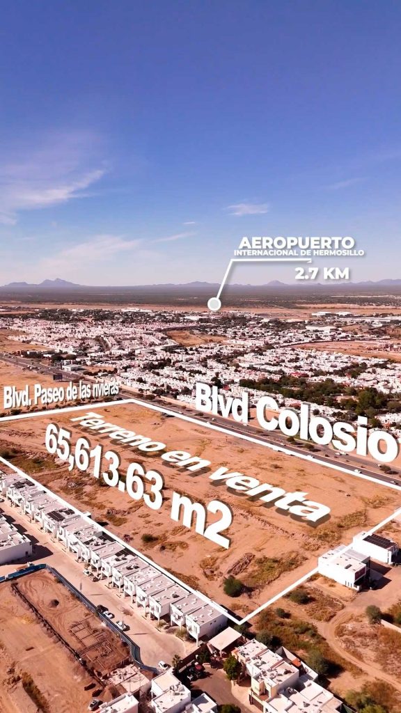 El proyecto se plantea al poniente de la capital de Sonora sobre un terreno de 6.5 hectáreas, ubicado en un punto clave de la ciudad: la intersección de los bulevares Colosio y Quintero Arce, muy cerca del Aeropuerto Internacional de Hermosillo.
