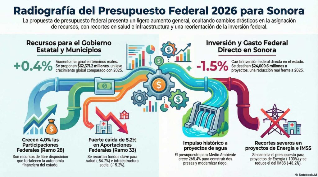 La mezcla de más participaciones y menos aportaciones para Sonora en 2026 ofrece en teoría un mayor margen de maniobra financiera para gobiernos locales, pero menos recursos condicionados para servicios esenciales.