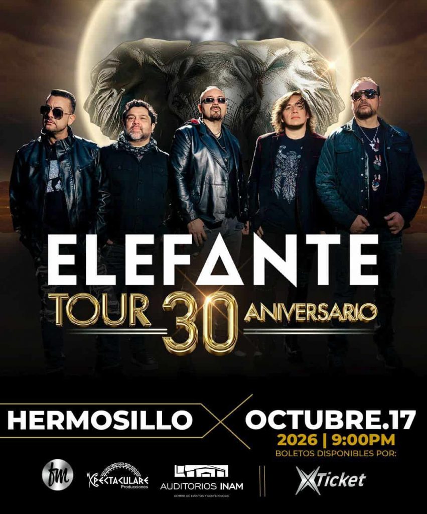Hermosillo, Sonora.– La banda mexicana Elefante llegará a Hermosillo como parte de su Tour 30 Aniversario, con el que celebra tres décadas de trayectoria musical y canciones que han marcado distintas etapas para su público.