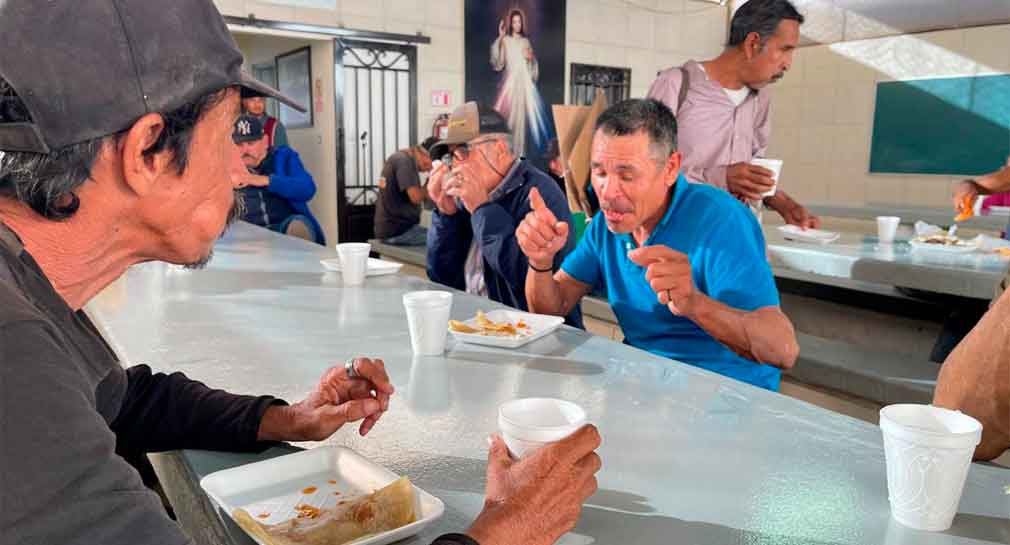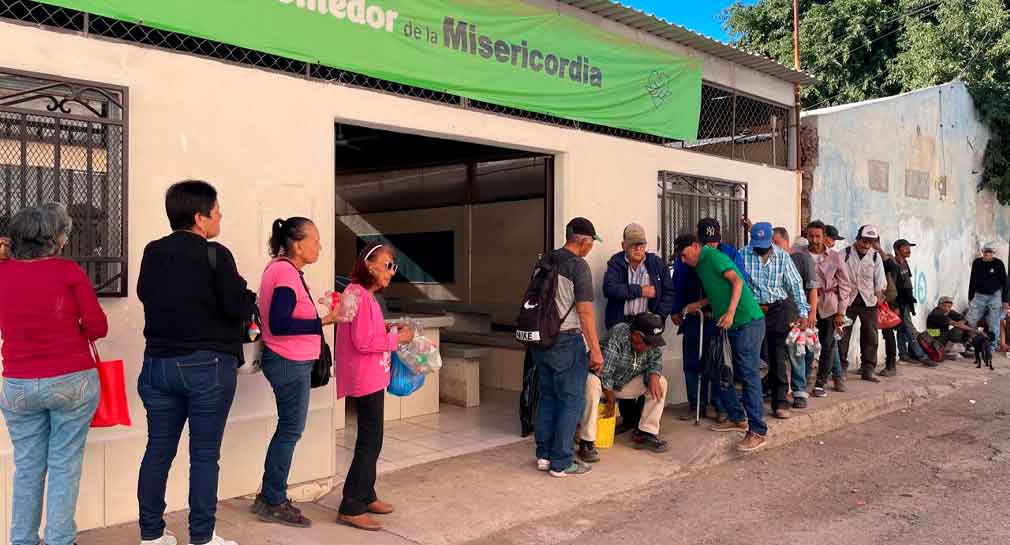 Ciudad Obregón, Sonora.- A paso lento, algunos apoyándose en bastones y otros cargando el peso de una vida difícil, pero con una sonrisa que delata alivio y esperanza, hombres y mujeres de la tercera edad, personas en situación de calle, en extrema pobreza y migrantes, llegan cada tarde al Comedor de la Misericordia.