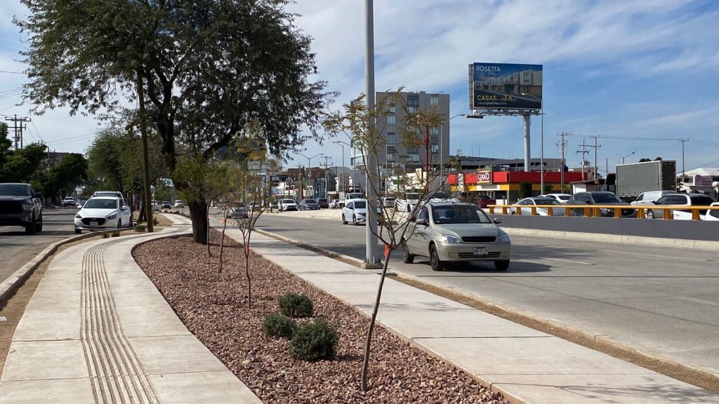Hermosillo, Sonora.- Entre concreto, rampas y carriles, el nuevo desnivel de Colosio y Solidaridad abrió paso también a la vegetación, con áreas verdes renovadas que buscan cambiar el rostro de uno de los cruceros más transitados de la ciudad, incorporando vida vegetal como parte central del proyecto.