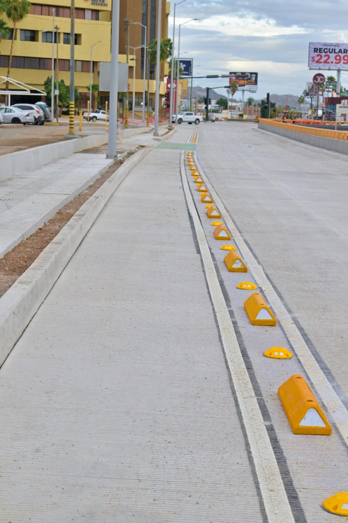 Detalló que la infraestructura ciclista cuenta con dimensiones adecuadas, de entre 1.5 y 2 metros de ancho, y se localiza a nivel de calle en ambos sentidos, tanto en el bulevar Colosio como en el Solidaridad, con el objetivo de garantizar traslados seguros para las personas usuarias de la bicicleta.