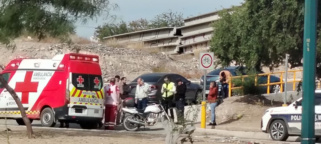 Paramédicos de Cruz Roja y personal de Tránsito Municipal acudieron al sector norte de Hermosillo tras registrarse un accidente en el que resultó afectado el conductor de una motocicleta.