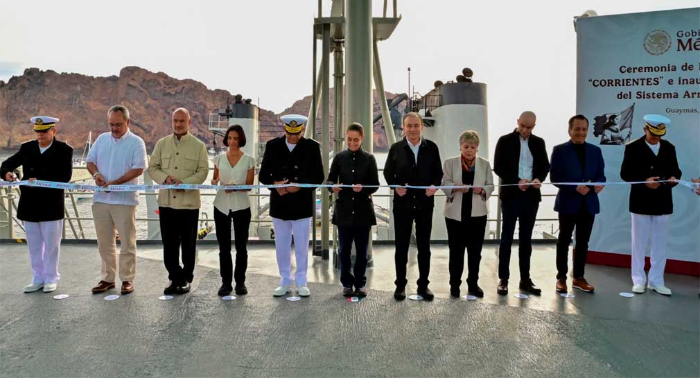 Guaymas, Sonora.- La presidenta de México, Claudia Sheinbaum, encabezó la inauguración del Museo Subacuático del Sistema Arrecifal Artificial Sonorense y presenció el hundimiento controlado del exbuque Corrientes, proyecto destinado a la creación de un arrecife artificial en la Bahía de San Carlos, municipio de Guaymas, Sonora.