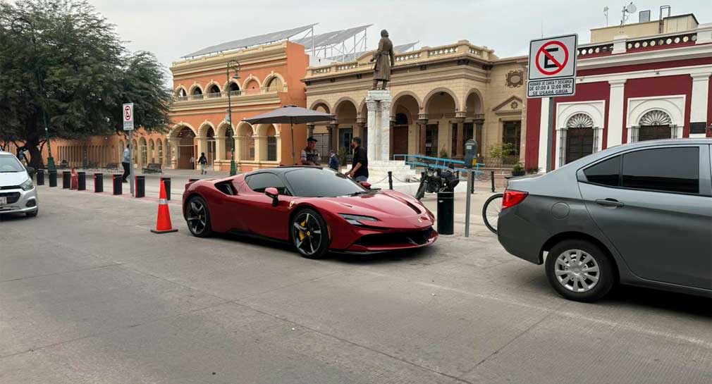 Este fue el carro Ferrari en el que el cantante llegó al restaurante ubicada en el centro de Hermosillo.