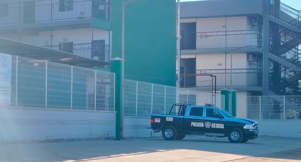 La mañana de hoy se pudo apreciar a la unidad 15399 de la Policía Estatal estacionada, cuyos agentes vigilaban el área perimetral del plantel, así como la entrada y salida de vehículos.