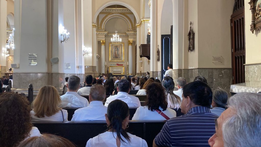 La marcha, avanzó de manera silenciosa y solemne. Los asistentes guardaron un momento de respeto, colocaron moños negros en señal de luto y caminaron desde las oficinas de la Asociación de Ingenieros de Minas, Metalurgistas y Geólogos de México hasta la Catedral de la ciudad.