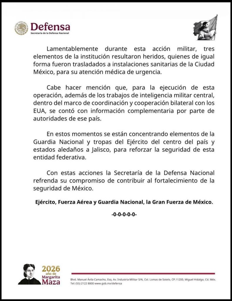 El abatimiento de “El Mencho” se logró con información de inteligencia proporcionada por Estados Unidos, según confirmó la Secretaría de la Defensa. El líder del CJNG era uno de los objetivos prioritarios para ambos países.