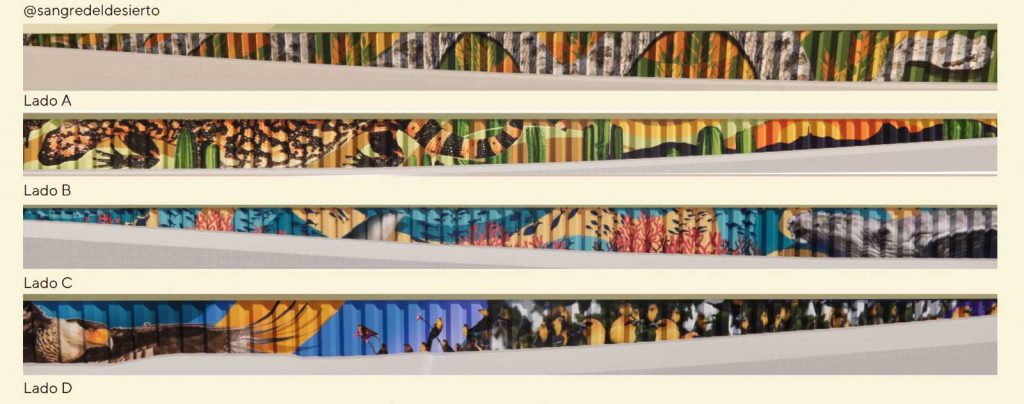 En dos de los lados del paso a desnivel predominarán especies acuáticas y aéreas que simbolizan el agua y el aire. En los otros dos se representarán criaturas terrestres adaptadas al clima árido, en alusión a la tierra y al sol característico de la región.
