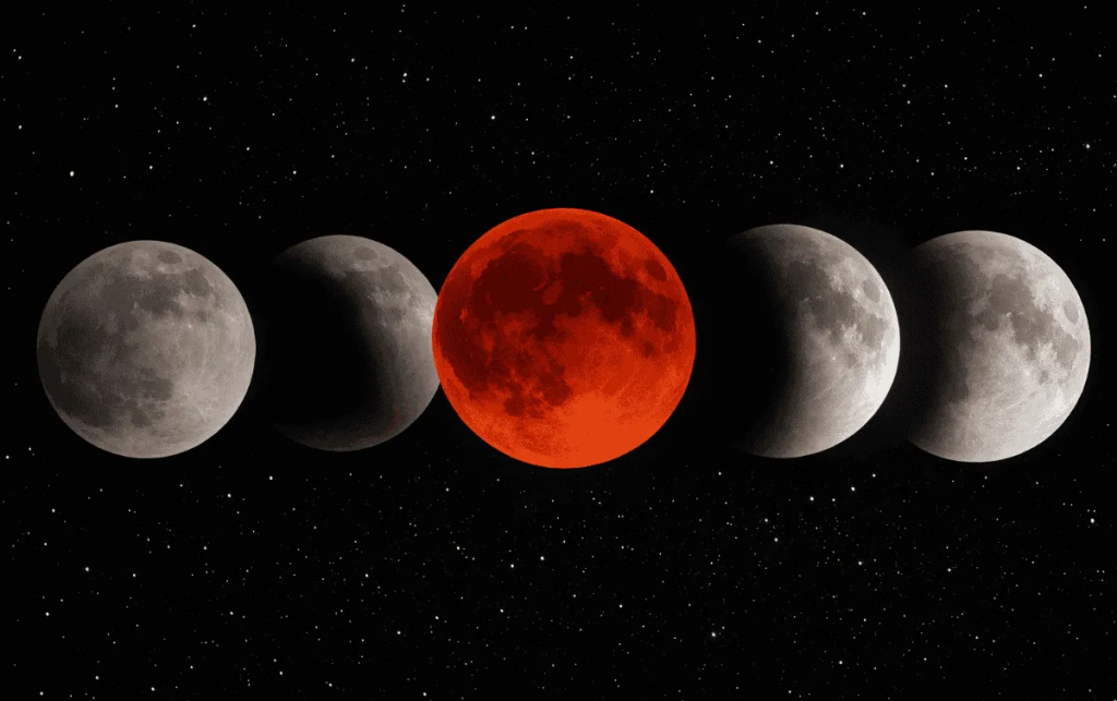 Durante el eclipse, la Luna puede adquirir tonos rojizos debido a la refracción de la luz solar en la atmósfera terrestre, fenómeno que suele atraer tanto a especialistas como a aficionados.