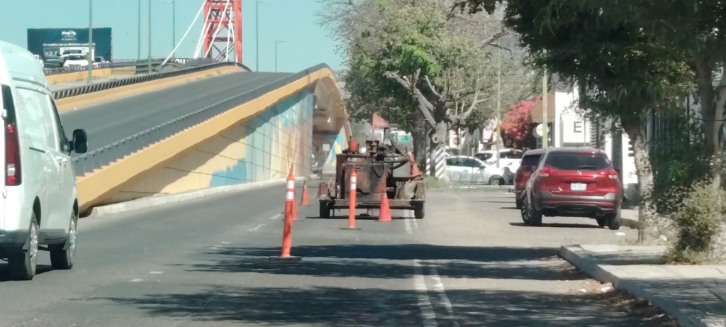 Durante un recorrido realizado por el Equipo de Proyecto Puente, se observó a personal del Ayuntamiento de Hermosillo trabajando en la corrección de imperfecciones del pavimento sobre el bulevar Morelos, específicamente en la zona ubicada debajo del puente que conecta Morelos con Periférico Norte.