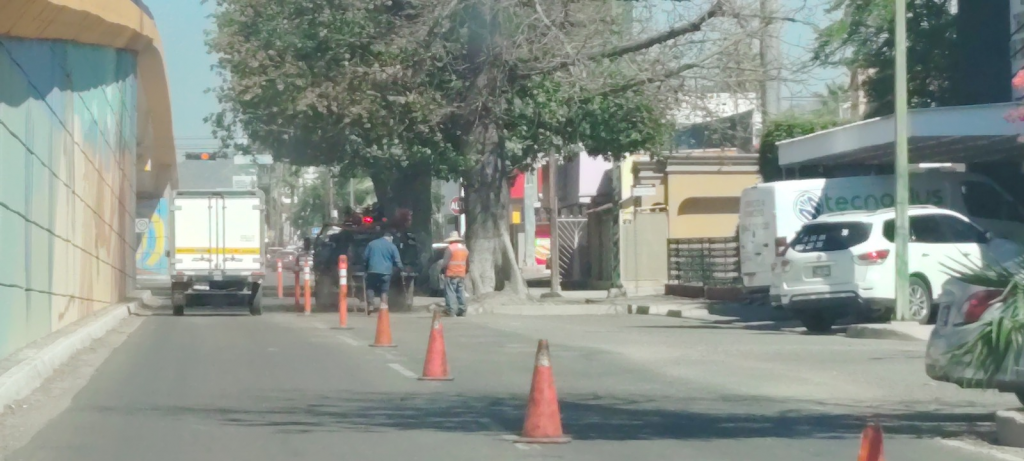 Las acciones no se han limitado únicamente al arreglo del pavimento. De manera paralela, se llevan a cabo labores de poda en los árboles situados en el camellón central que divide ambos sentidos de circulación del Morelos, con el objetivo de mejorar las condiciones de visibilidad y mantenimiento del área.