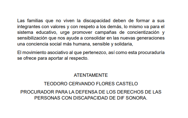 Flores Castelo adelantó que el equipo legal de la Procuraduría de la Discapacidad, perteneciente al Sistema DIF Sonora, ya trabaja en la elaboración de la denuncia correspondiente.