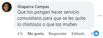 “Que los pongan a hacer servicio comunitario para que se les quite lo chistoso o que los multen”, “aquí el problema no son los hijos, sino quienes los están educando”, “que los pongan a barrer las calles, servicios comunitarios a ver si les gusta la broma”, “A mí me parecería muy bien que los encierren y los multen por chistosos, son así porque nadie les dice nada”, manifestaron seguidores de Facebook.