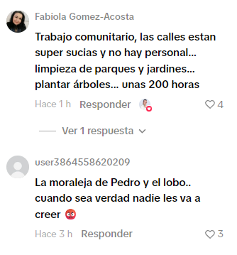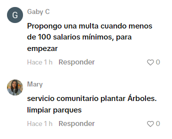 Ante la pregunta hecha por Proyecto Puente acerca de las sanciones que proponen para sancionar estas conductas, usuarios de las comunidades en Facebook, Instagram y TikTok respondieron lo siguiente.