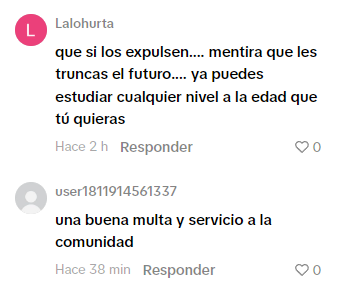 Finalmente, en TikTok, los usuarios también coincidieron en que el servicio social y las multas son una buena manera de que los jóvenes aprendan a tomar responsabilidad por sus actos.