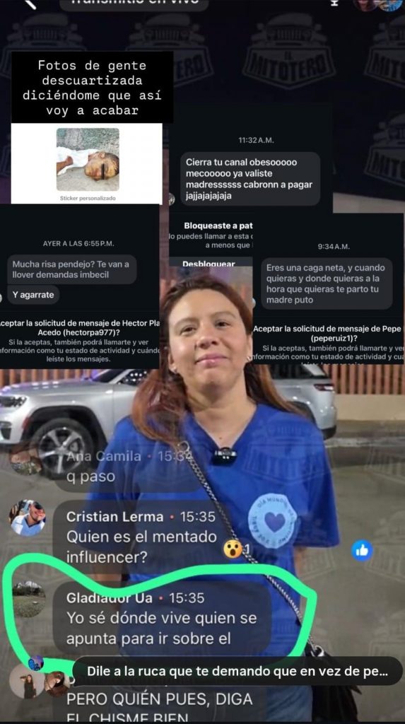 Al revisar sus redes sociales, Obeso señaló que ha recibido mensajes y fotografías explícitas sobre el daño que le harían si lo encuentran en la calle.
