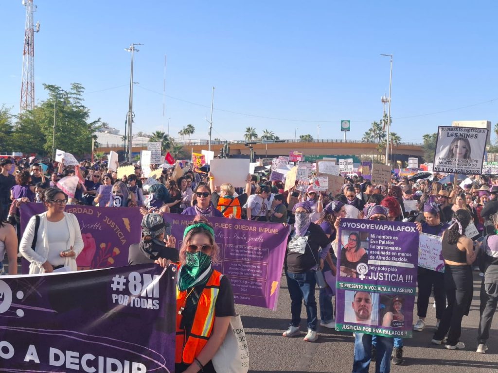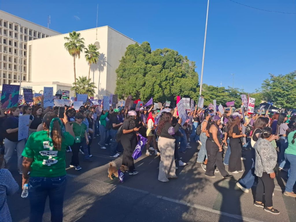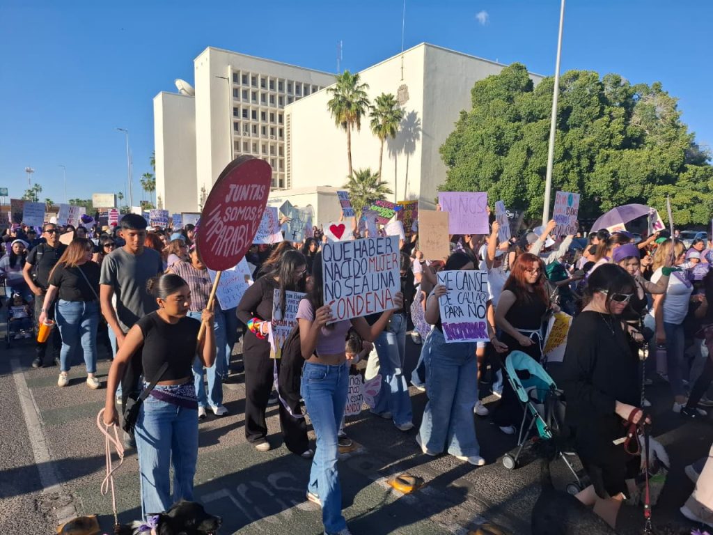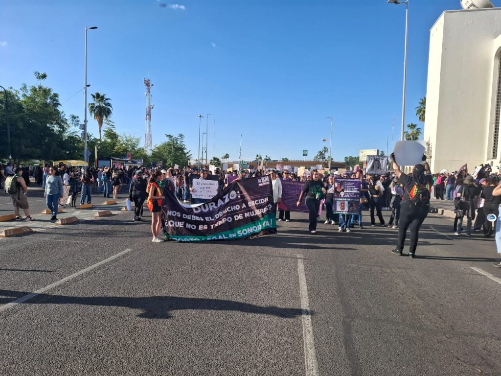 Minutos después, las manifestantes comenzaron a avanzar por el bulevar Rosales, en el primer cuadro de la ciudad, con dirección al Congreso del Estado de Sonora. Durante el trayecto, las participantes corearon consignas como “Mujer escucha, esta es tu lucha” y “Ni una más, ni una asesinada más”.