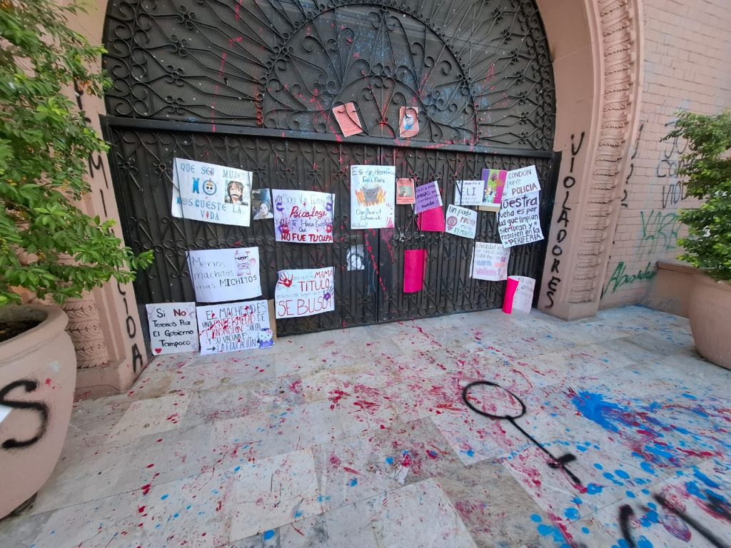 Mientras continuaban las protestas, las mujeres coreaban consignas como “No fue una, fuimos todas” y “El que no brinque es macho”. El inmueble del Poder Judicial presentó daños, principalmente en su puerta de acceso, donde también se realizó la quema de pancartas y otros materiales.
