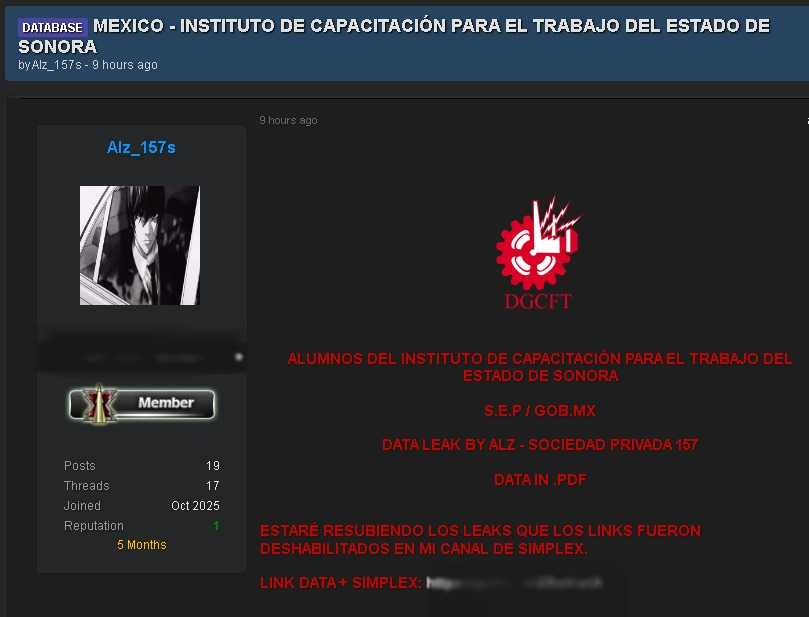 Esta filtración, explicó Gómez Villaseñor, estuvo a cargo del grupo “Sociedad Privada 157”, cuyo líder, identificado como “Marssepe”, vulneró en 2025 el sitio web del Sistema de Registro y Seguimiento de Solicitudes de Proyectos de Infraestructura y Equipamiento Urbano (IPPE) del Gobierno de Sonora.
