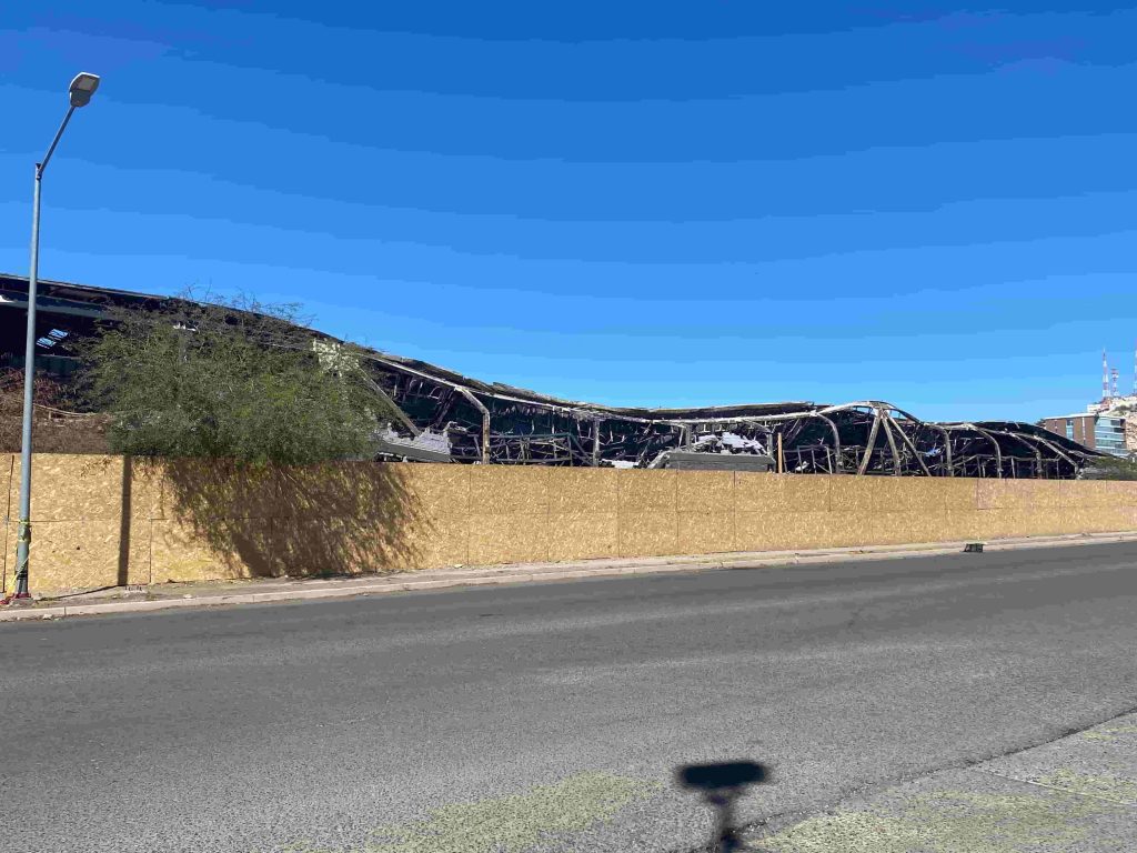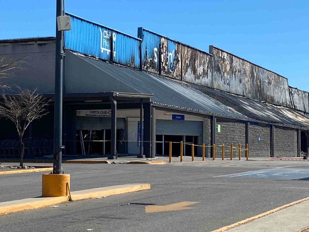 Hermosillo, Sonora.- Ciudadanos y trabajadores que suelen frecuentar los alrededores de la tienda Sam’s Club que se incendió en el Vado del Río en Hermosillo reportaron malos olores y proliferación de moscas en el sector, a un mes de que se registrara el siniestro.