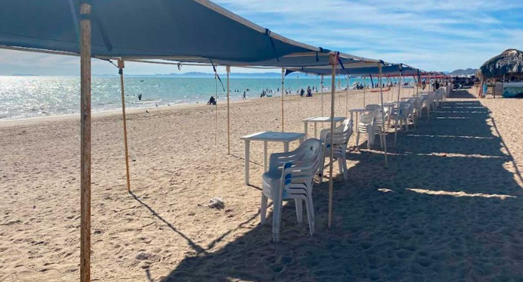 Hermosillo, Sonora.- Durante el fin de semana, visitantes que acudieron a Bahía de Kino compartieron diversas opiniones sobre las carpas instaladas para dar sombra a la orilla del mar: mientras algunos turistas consideran que son útiles para protegerse del sol y descansar frente al mar, otros opinan que afectan la imagen del lugar y prefieren las tradicionales palapas de palma.