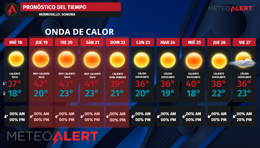 Hermosillo, Sonora.- A partir de este jueves, la capital sonorense entrará en un periodo de calor extremo que podría marcar un nuevo récord histórico de temperatura máxima para marzo, de acuerdo con información difundida por MeteoAlert Hermosillo.