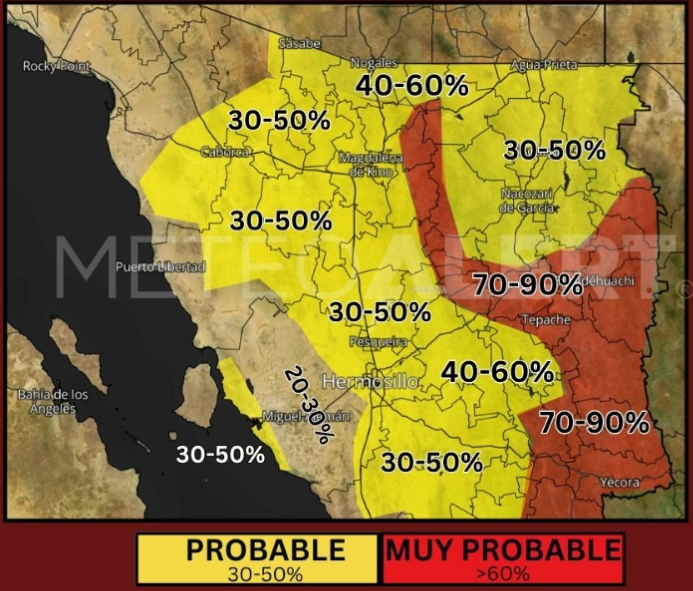 Se prevé que la mayor actividad se concentre en zonas serranas; sin embargo, este sistema también podría extenderse hacia áreas urbanas como Hermosillo, aunque con un comportamiento más aislado.